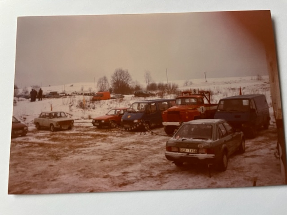 Foto: Sacensību organizatora un autosportista Vaira Trallas fotogrāfija ar kravas automašīnu Nr.8 no sekretariāta uz dalībnieku parku.