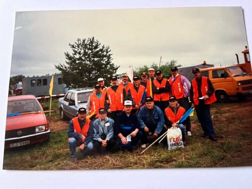 Foto: pirmajā rindā no kreisās otrais galvenais tiesnesis Jānis Švirbergs, sacensību organizators Vairis Tralla, komentētājs Elmārs Kokins, distances tiesnesis Jānis Tauriņš; otrajā rindā distances tiesneši no kreisās otrais Jānis Lejasblusa, Vladimirs Lonšakovs, Raivis Zalāns, Jānis Birks, distances priekšnieks Juris Cerbulis; trešajā rindā distances tiesneši no kreisās otrais Ēriks Serdāns, Andris Pavasars.
